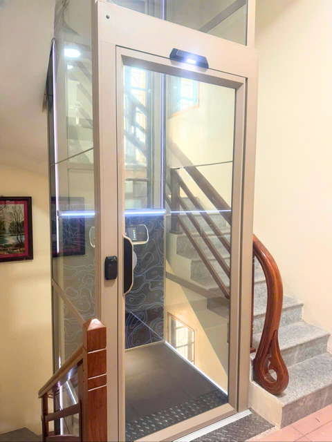 Thang máy gia đình nhỏ gọn thiết kế hiện đại, phù hợp với mọi không gian sống, giúp dễ dàng di chuyển giữa các tầng mà không tốn sức.